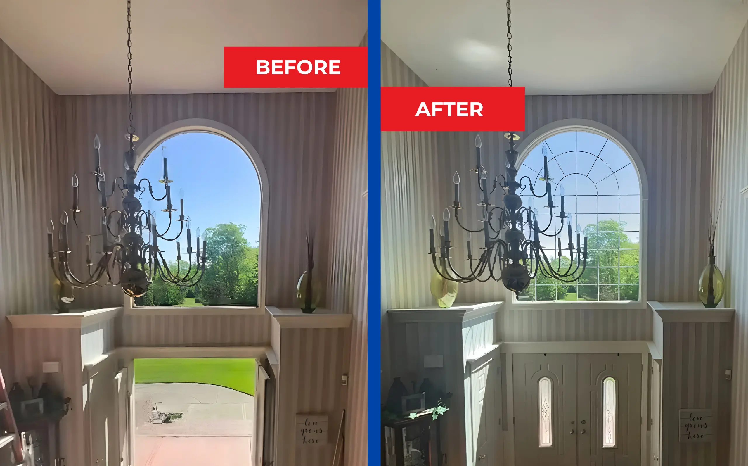 Discover how APEX restored clarity with foggy glass replacement in Fairview Park, OH, transforming a cloudy arched window into a beautiful feature.