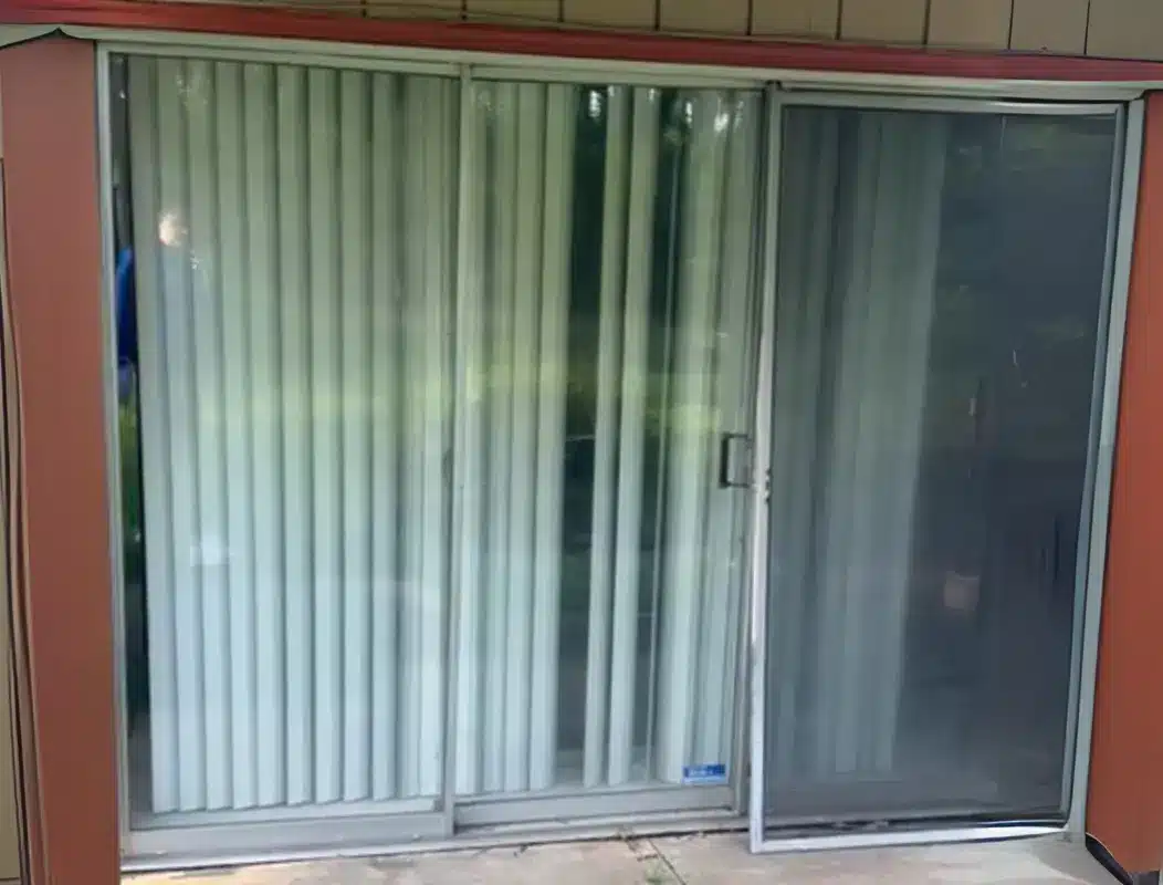 The old door was removed with care to avoid damage to the frame. Years of wear had caused the rollers and track to warp, leading to sticking and difficulty in sliding. The outdated glass panels also allowed drafts to enter the home, which increased energy costs and reduced comfort. By replacing the entire sliding system, we eliminated these long-standing problems.